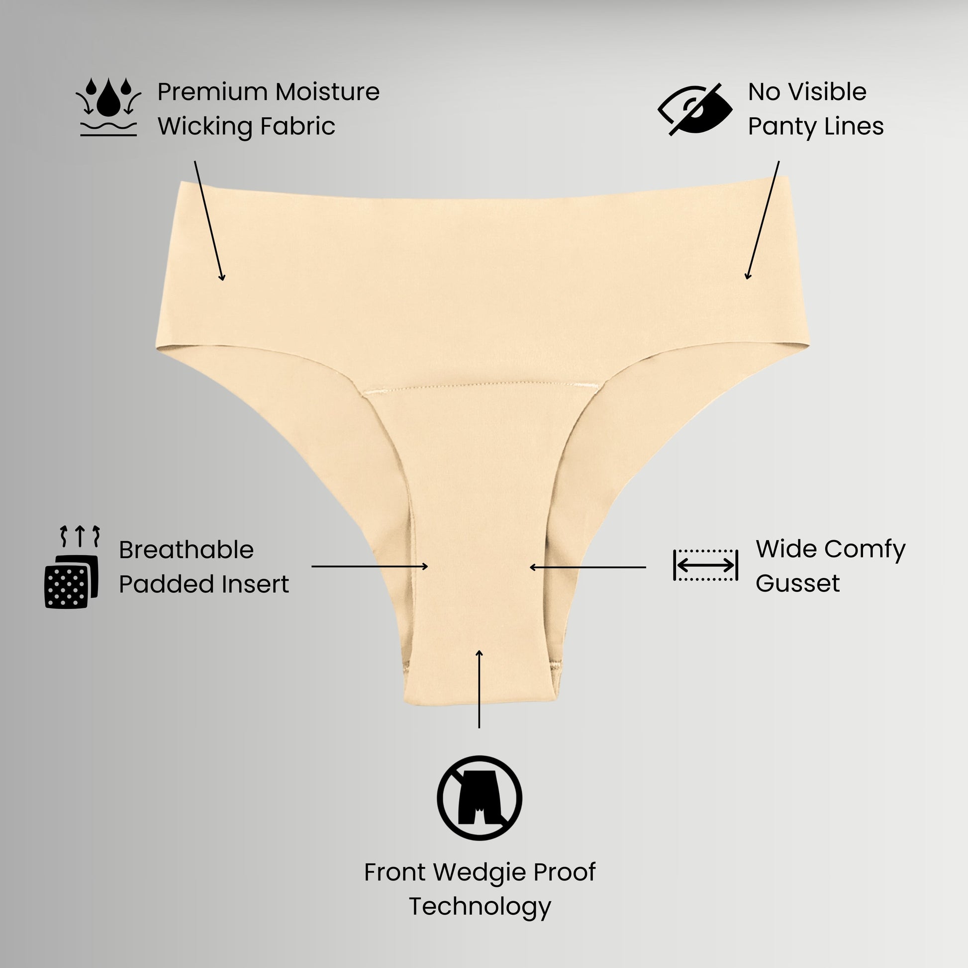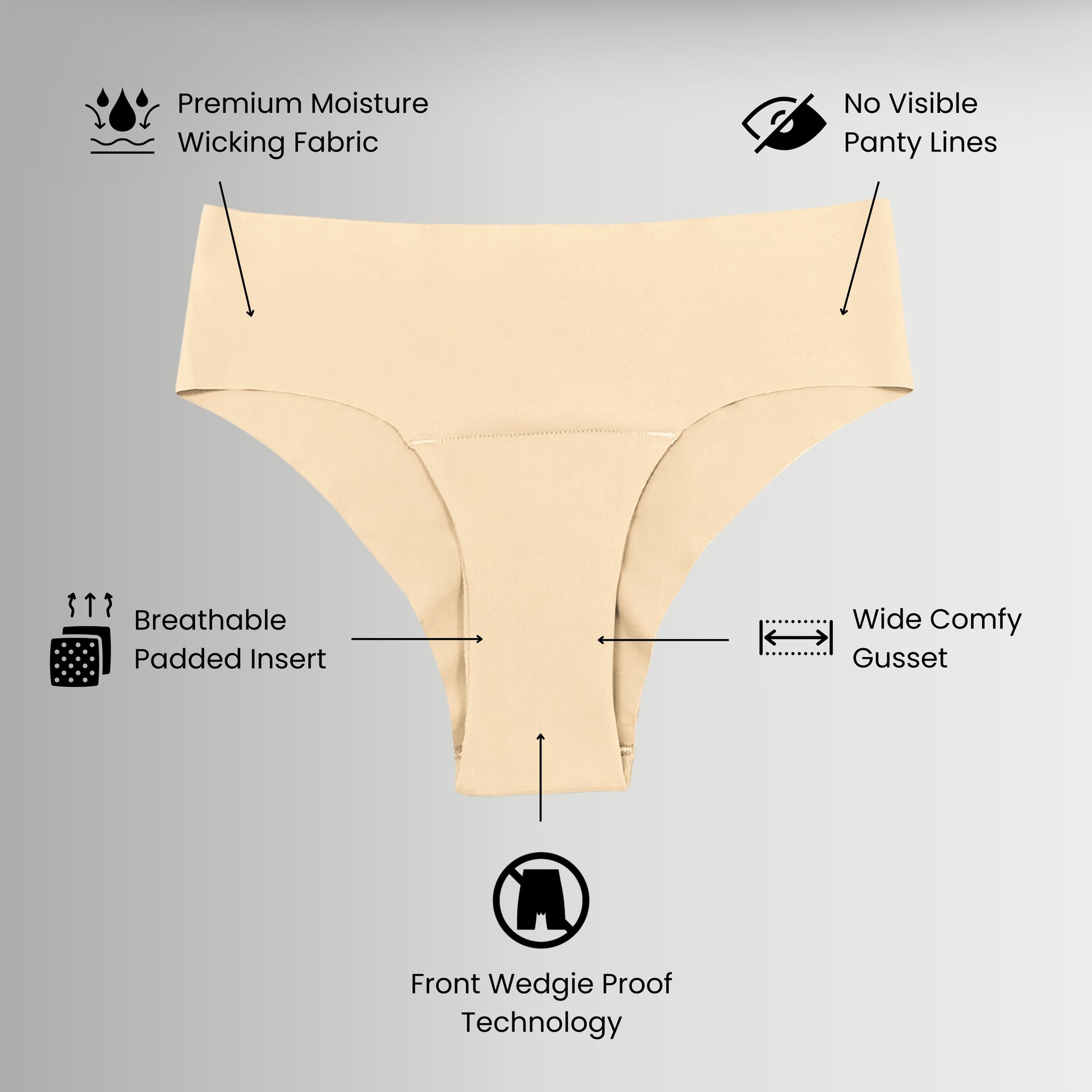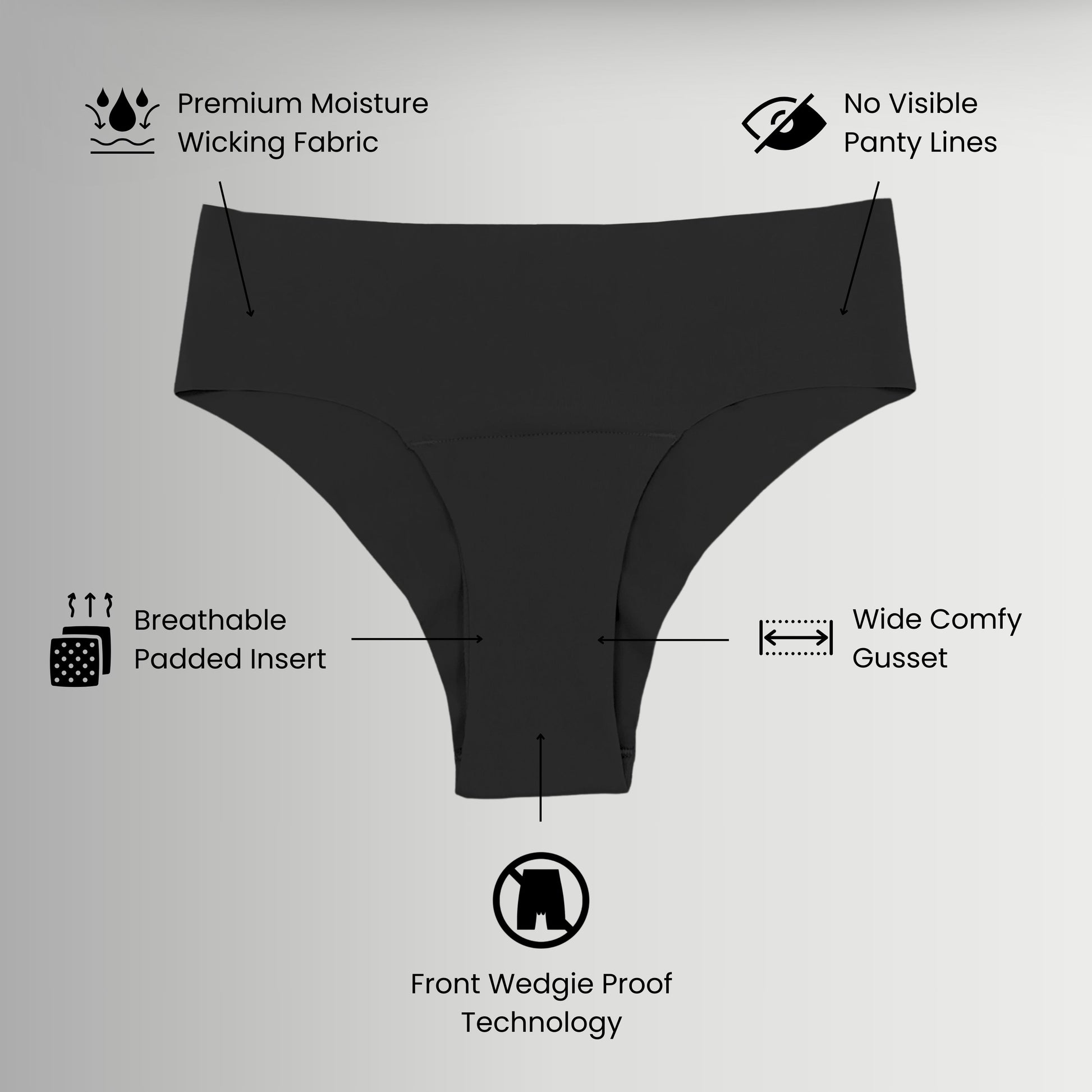 Camel Toe Proof Technology | Seamless | Wide Absorbent Gusset | High Rise